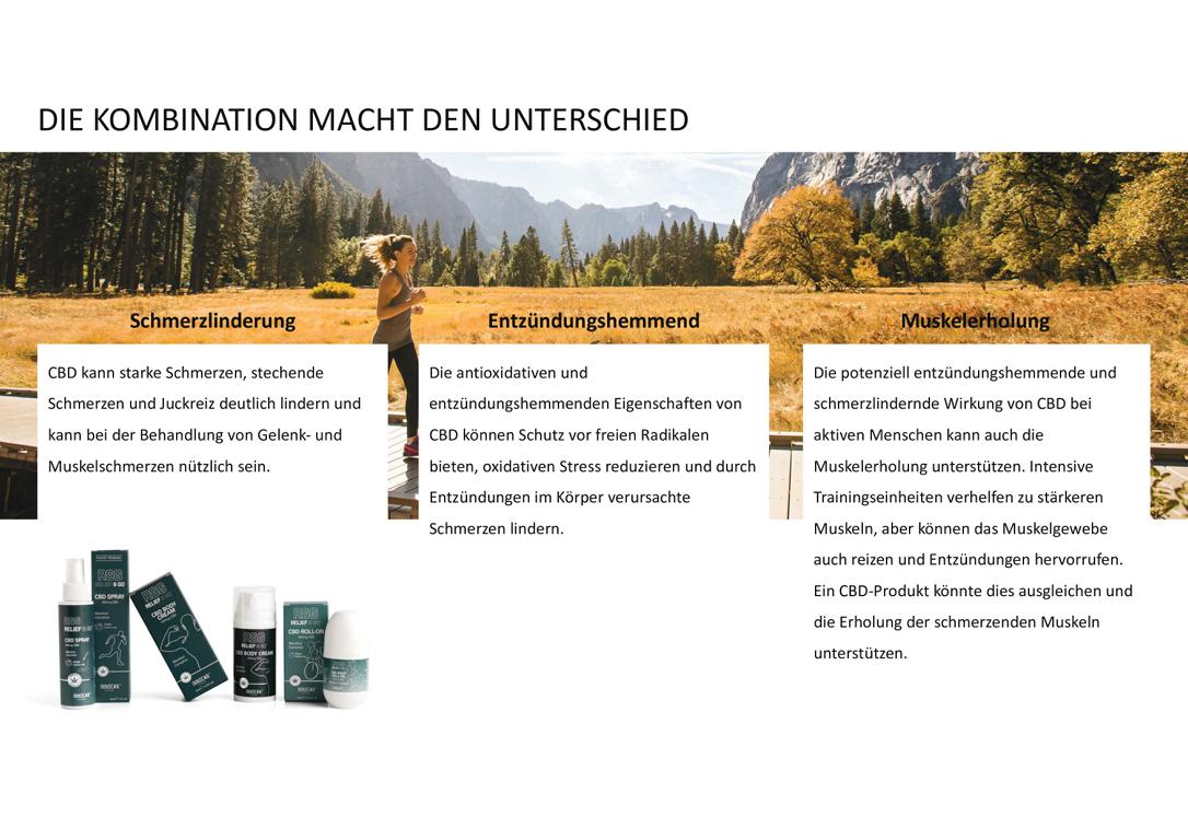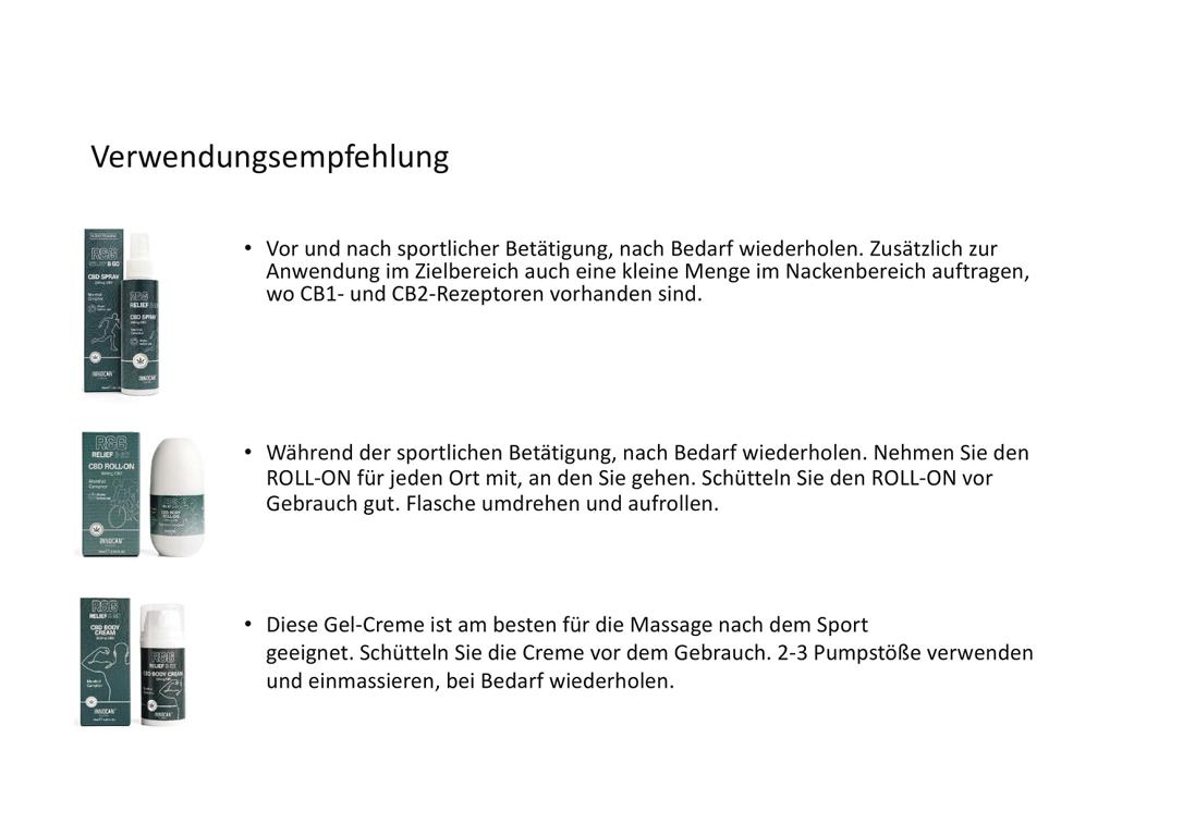 Eine schnelle und wirksame Methode zur Linderung von Muskel- und Spannungsschmerzen bietet das Relief Roll-On CBD Spray von InnoCan Pharma mit 300mg CBD. Die Rezeptur enthält diverse Inhaltsstoffe, wie beispielsweise Magnesium, Menthol und Kampfer, welche den Körper bei der Erholung von Sportverletzungen, körperlicher Belastung oder Spannungen unterstützen. Durch das schnell einziehende CBD-Gel kann der Roll-On-Spray bei der Schmerzlinderung und Entspannung helfen. Zusätzlich wird hochwertiges CBD-Öl aus EU-angebautem Hanf genutzt, welches mithilfe von CO2 isoliert und extrahiert wird, um höchste Potenz und Qualität zu gewährleisten. Die Anwendung ist einfach: Der Spray wird 1-2 Mal auf die saubere Haut gerollt und einmassiert, um die bestmöglichen Ergebnisse zu erzielen. Der Roll-On kann vor, während und nach körperlicher Aktivität verwendet werden und kann bei Bedarf wiederholt werden. Dank der nährenden Inhaltsstoffe kann der Körper sich erholen und entspannen, um schmerzfrei und voller Energie in den Tag zu starten. Die Formel beinhaltet CBD mit entzündungshemmenden, schmerzlindernden und abschwellenden Eigenschaften, welche die Haut beruhigen können. Menthol sorgt für ein kühlendes Gefühl auf der Haut und hilft bei der Schmerzlinderung, während Magnesiumchlorid Muskel- und Spannungsschmerzen lindern kann. Kampfer hilft bei Schmerzen, Schwellungen und verhindert Hautrötungen. InnoCan Pharma verwendet ausschließlich hochwertige, natürliche, pflanzliche Inhaltsstoffe und unterzieht das Relief Roll-On CBD Spray strengen Qualitätskontrollen, um die Sicherheit und Wirksamkeit zu gewährleisten. Wenn Sie auf der Suche nach einer natürlichen und effektiven Möglichkeit sind, Muskel- und Spannungsschmerzen zu lindern, empfiehlt sich die Verwendung des Relief Roll-On CBD Sprays von InnoCan Pharma.