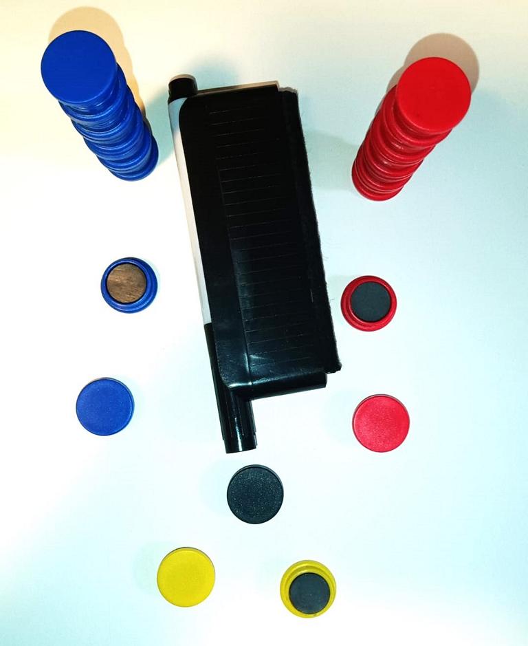 Zubehörartikel: Der Satz notwendiger Attribute für jede Taktiktafel. Das Set beinhaltet Magnetchips, Marker und Radiergummi. 27 Chips, verschiedene Farben wie abgebildet.